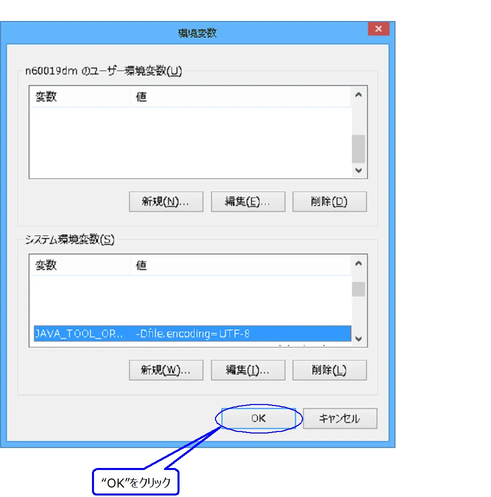 Enter JAVA_TOOL_OPTIONS in the variable name and -Dfile.encoding=UTF-8 in the variable value.