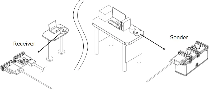 Section titled “Overview”Using LoRa Easy leaf, sensor data (temperature, humidity, illumination, tilt) can be sent to a distant location and output to a PC terminal.