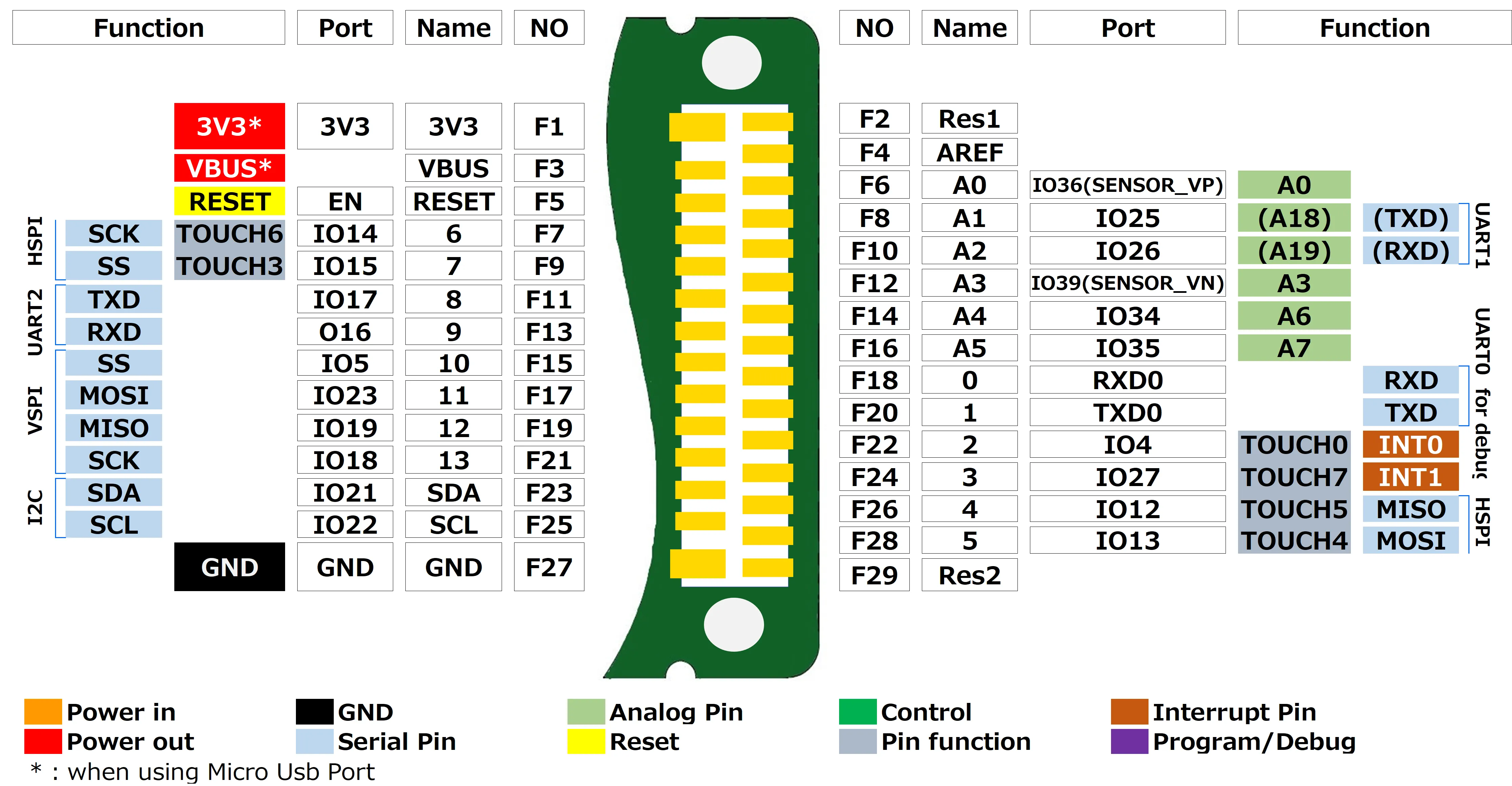 Section titled “Features”It is a 32-bit MCU leaf with Espressif Systems’ Xtensa Dual-Core 32-bit LX6 microprocessor, ESP32-WROOM-32 with built-in technically certified Wi-Fi and BLE. Radio certifications include FCC, CE-RED, IC, TELEC, KCC, SRRC, and NCC (Espressif Systems Data Sheet V2.9). Can be used as VBUS (5V) power supply with USB power supply. List of Assistants