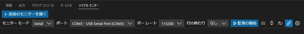 monitor_speed = 115200src/main.cpp(画面左)を開き、以下のコードを貼り付けて下さい。
