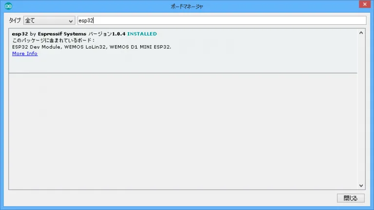 esp32を入力してインストールします。バージョンを選択が出来ます。