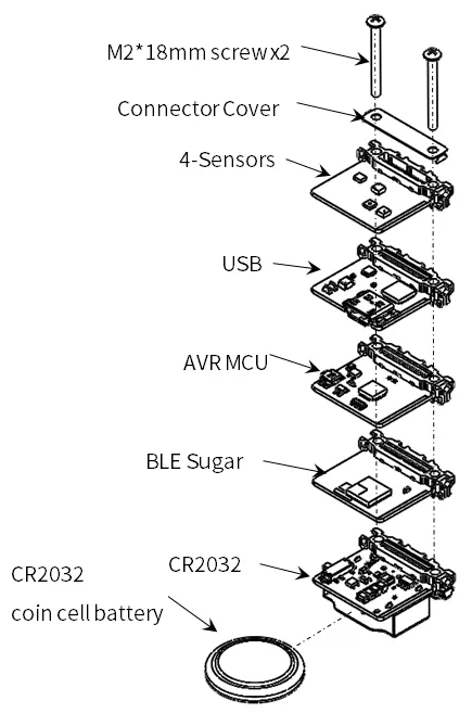 - Arduino IDEで4-Sensors_BLE.inoを書き込む。Arduino IDE 1.8.7、Arduino AVR Boards 1.6.23で動作検証済み。6