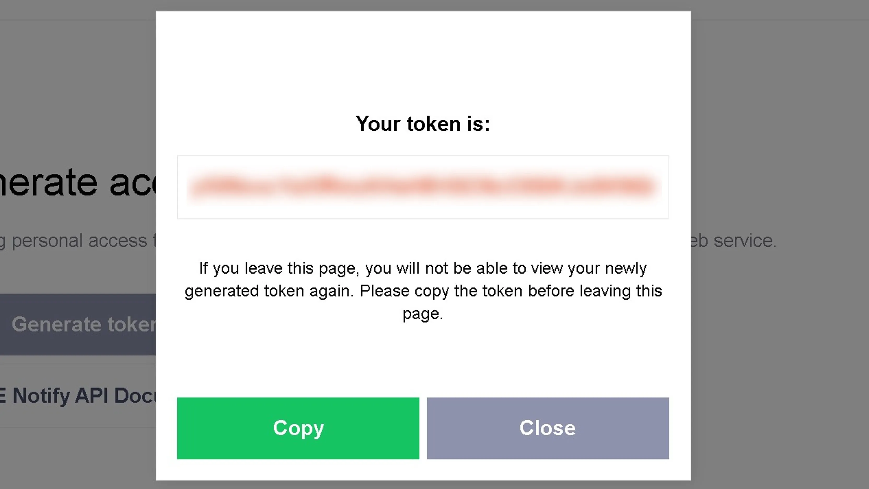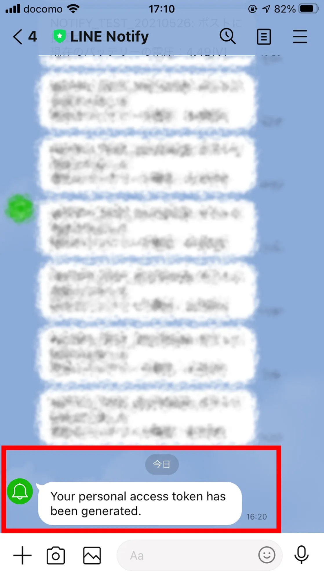 トークンの生成が完了しました。設定したLINEにもメッセージが届いているはずです。