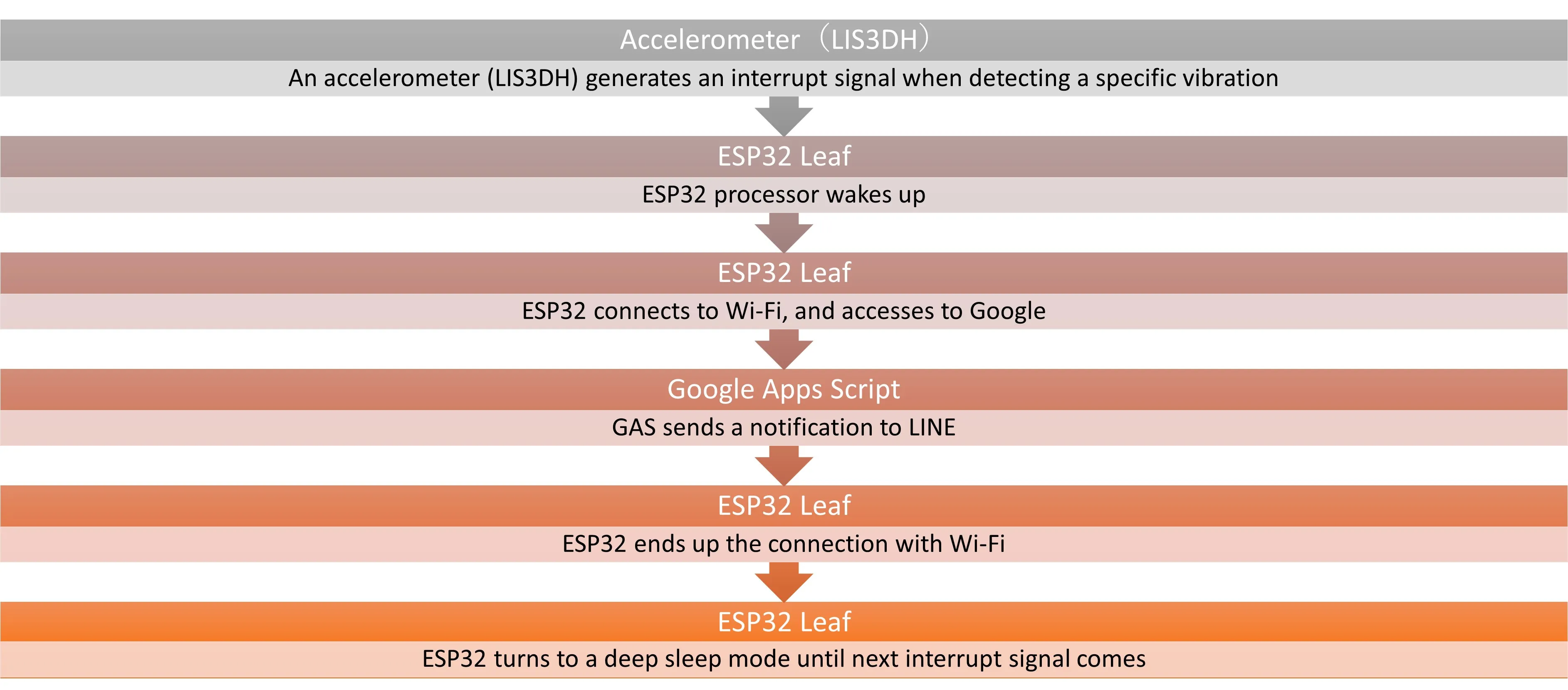 writeRegister8(LIS3DH_REG_INT1DUR, 0x03);ESP32を傾けたときにスリープから立ち上がり、Wi-Fiに接続してからLINE Notifyに通知を送信します。