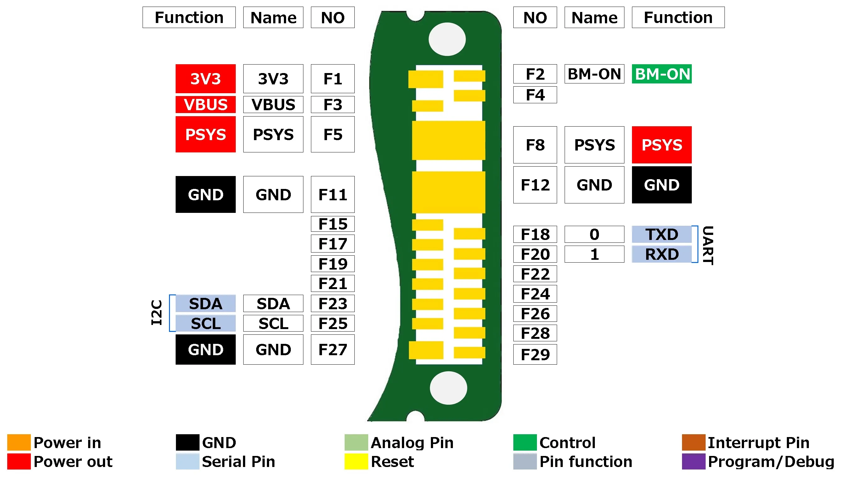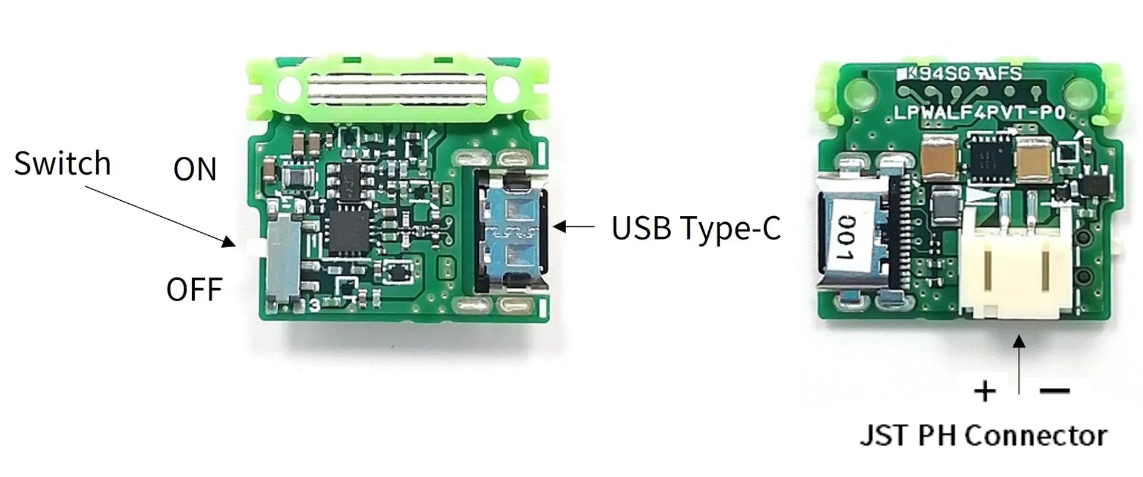 LTE-M king Sリーフは、JST製PHコネクタからの電池電圧やVBUSの電圧を3.3Vに変換して、各リーフに供給したり、MCUリーフの書き込みや電池電圧をモニターが出来ます。