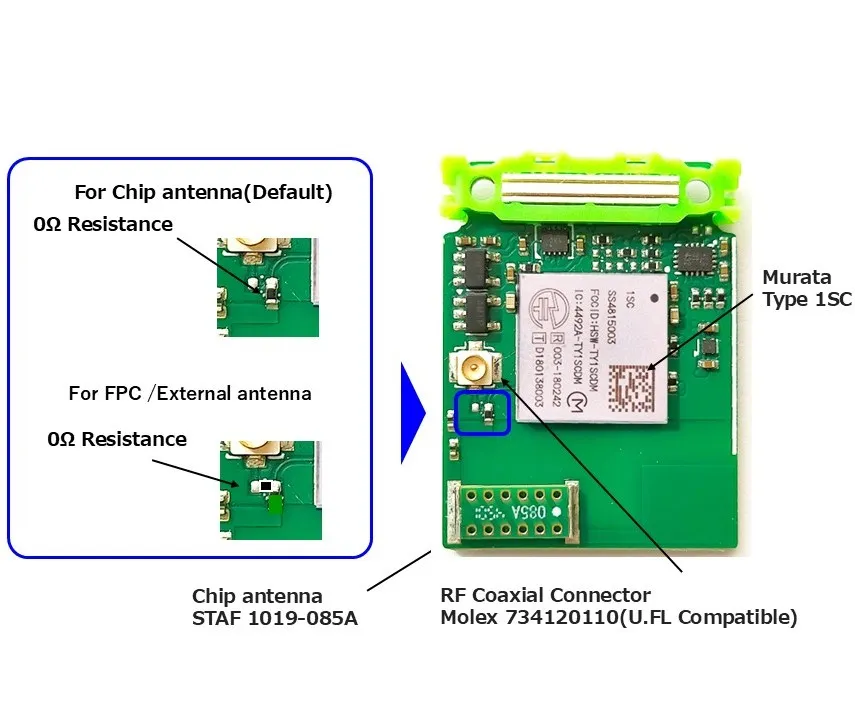Murata Type 1SCを搭載したLTE-Mリーフです。工事設計認証されたChip antenna(STAF 1019-085A)を搭載しており、省電力の無線通信が手軽に利用できます。