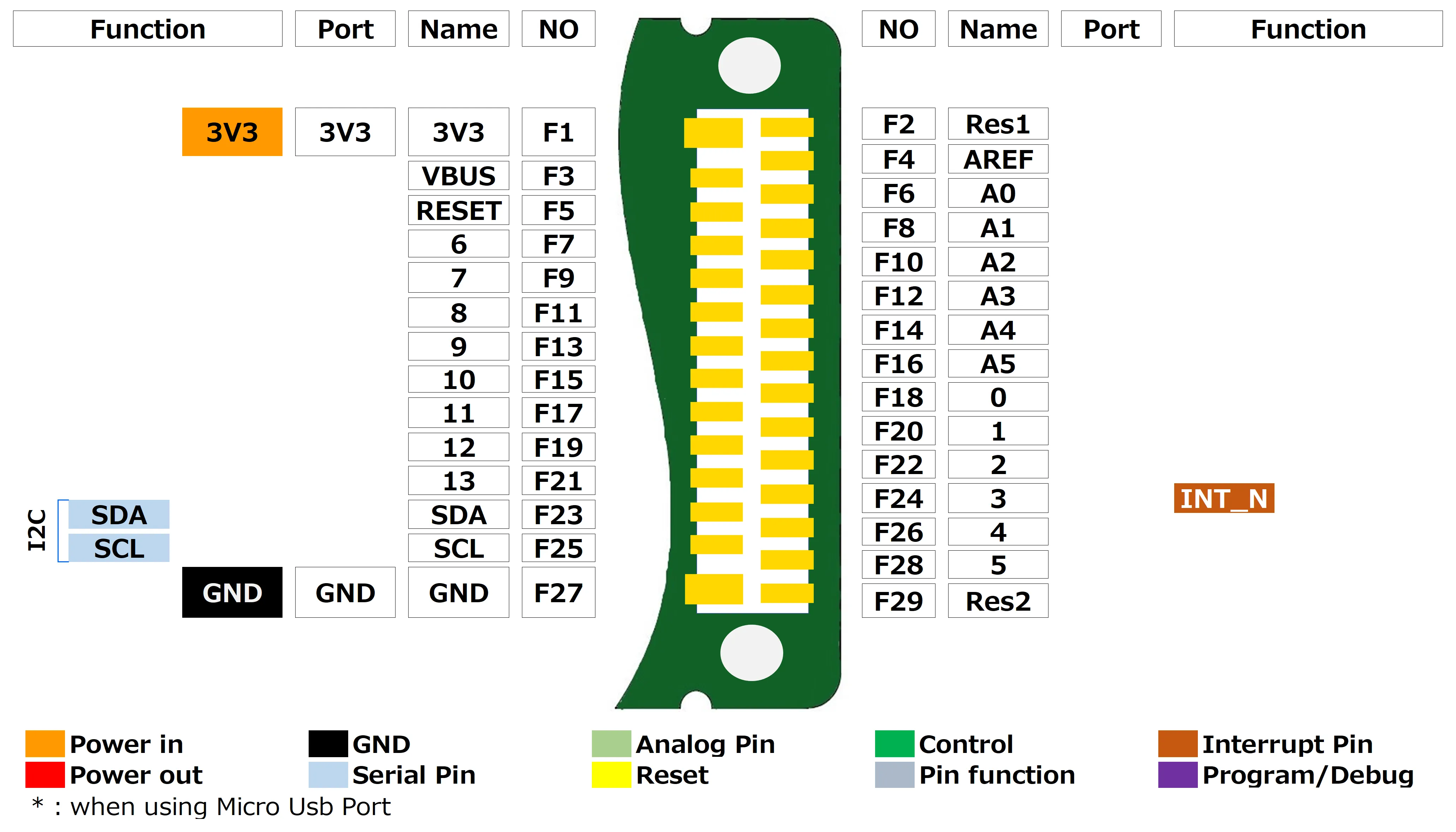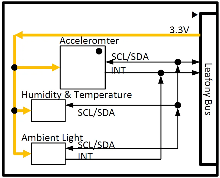 温湿度センサ、照度センサ、加速度センサを搭載したリーフです。MCUリーフとはI2Cで接続されます。