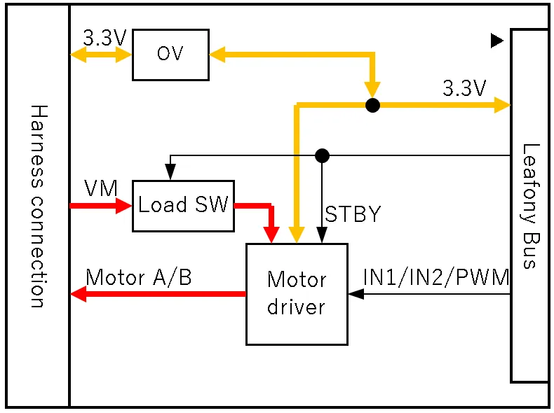 2個のDCモータを接続可能なモータドライバを搭載したリーフです。