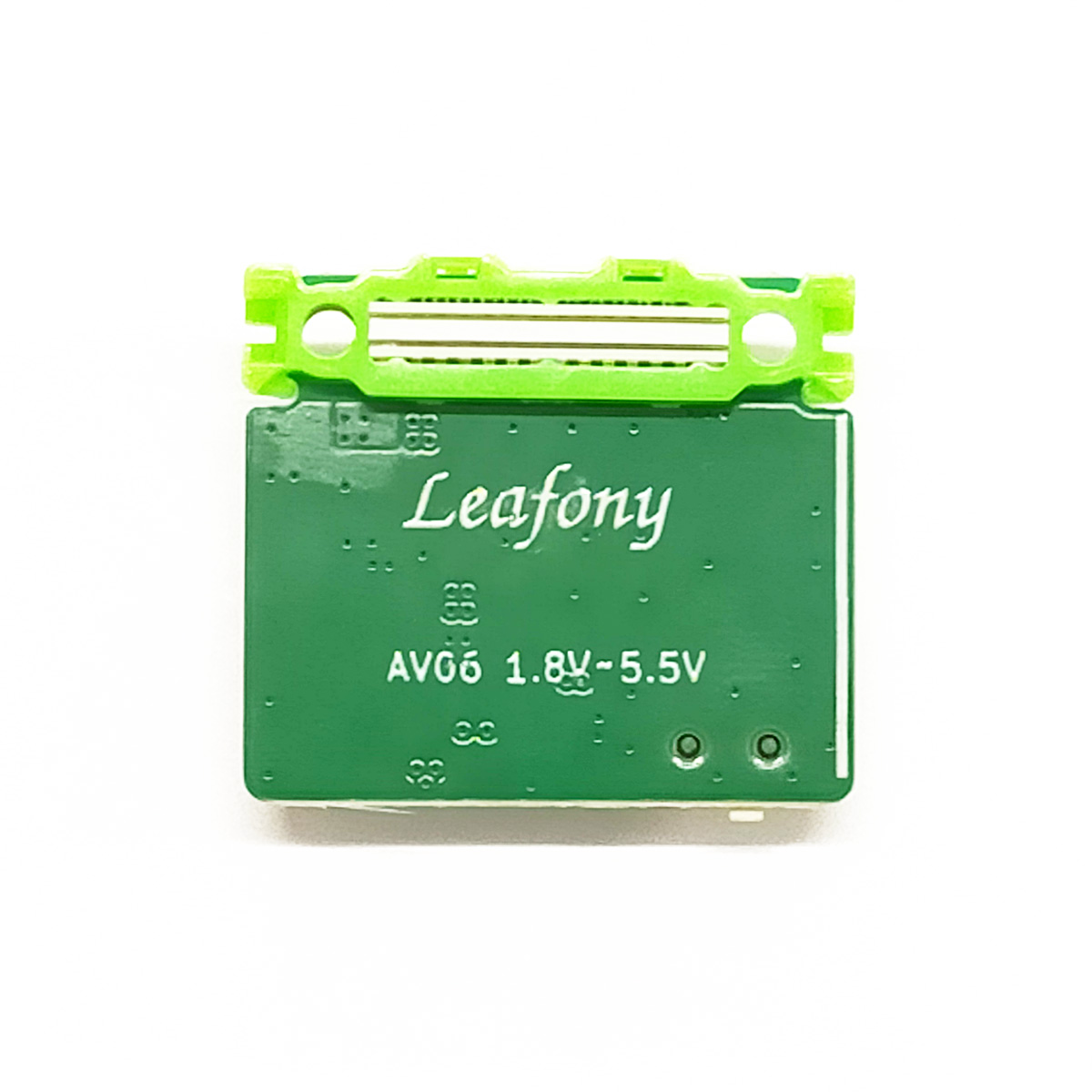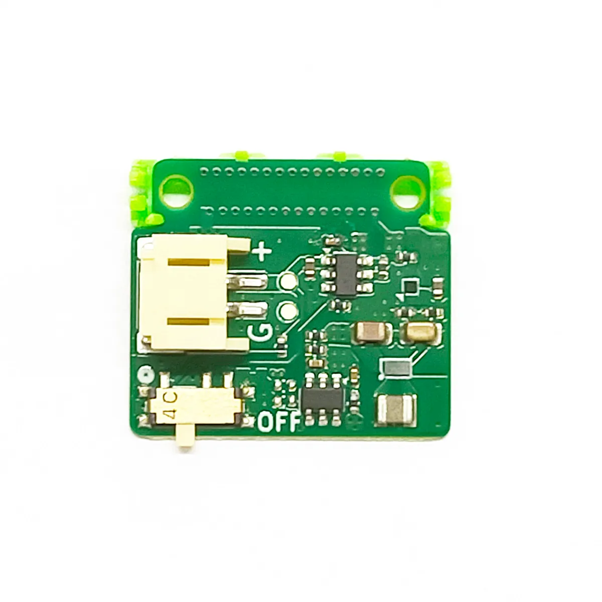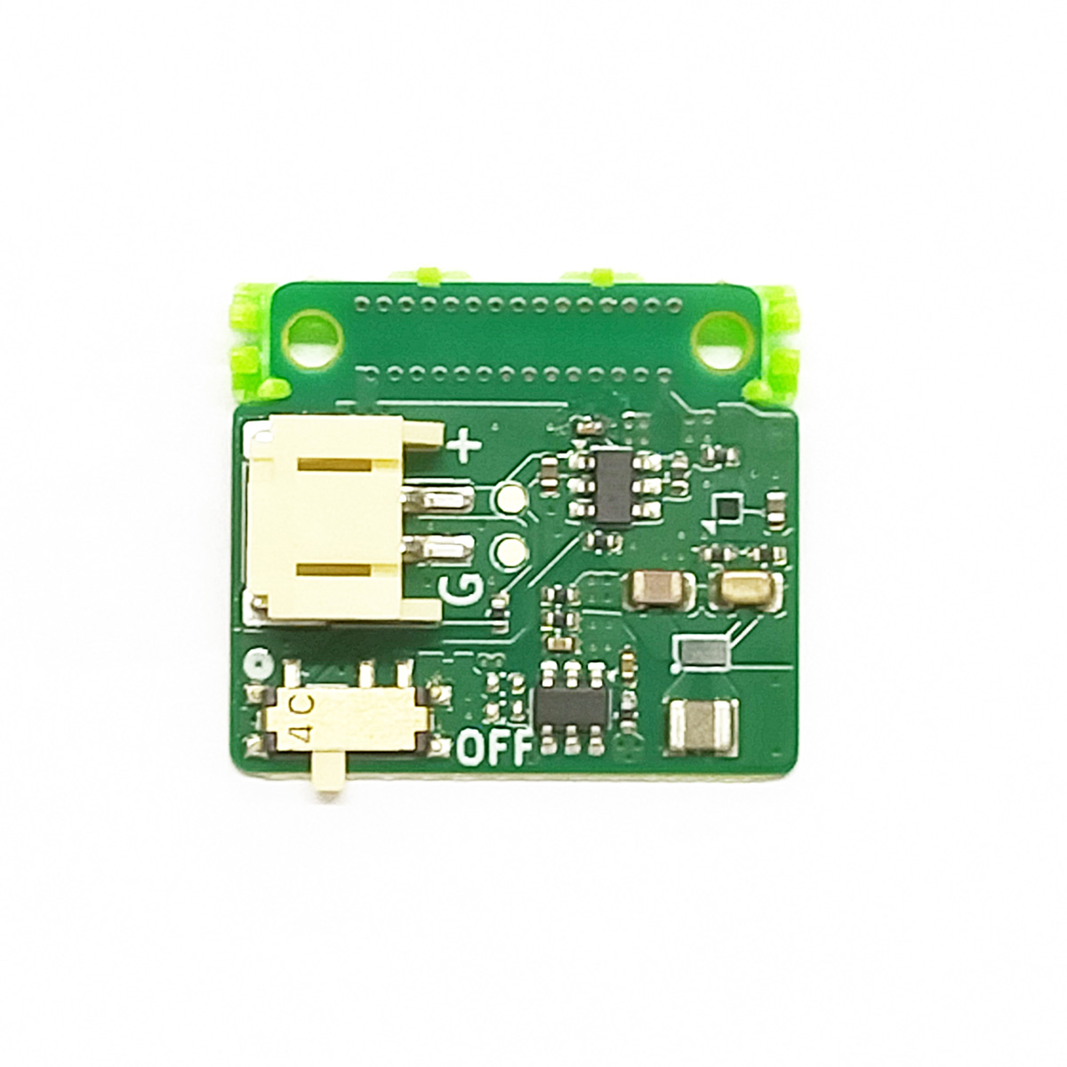 1.8~5.5Vの電池電圧を昇降圧電源回路により3.3Vに変換し、出力電圧3.3V、出力電流1.0Aを各リーフに供給するリーフで、電池電圧をモニターするためのADコンバータも実装しています。