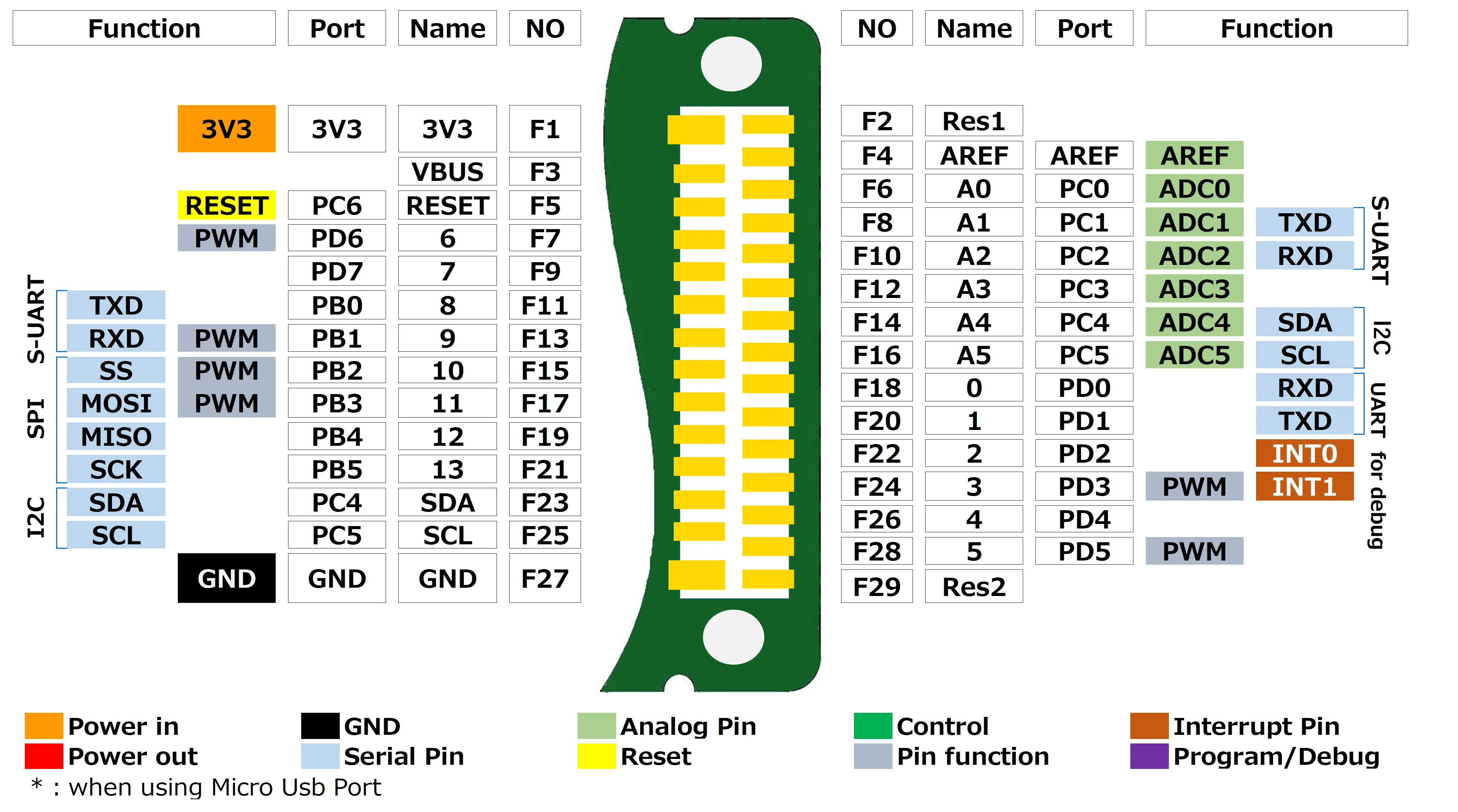 | LED | Control LED by using pin 13 (Same as Arduino UNO) |