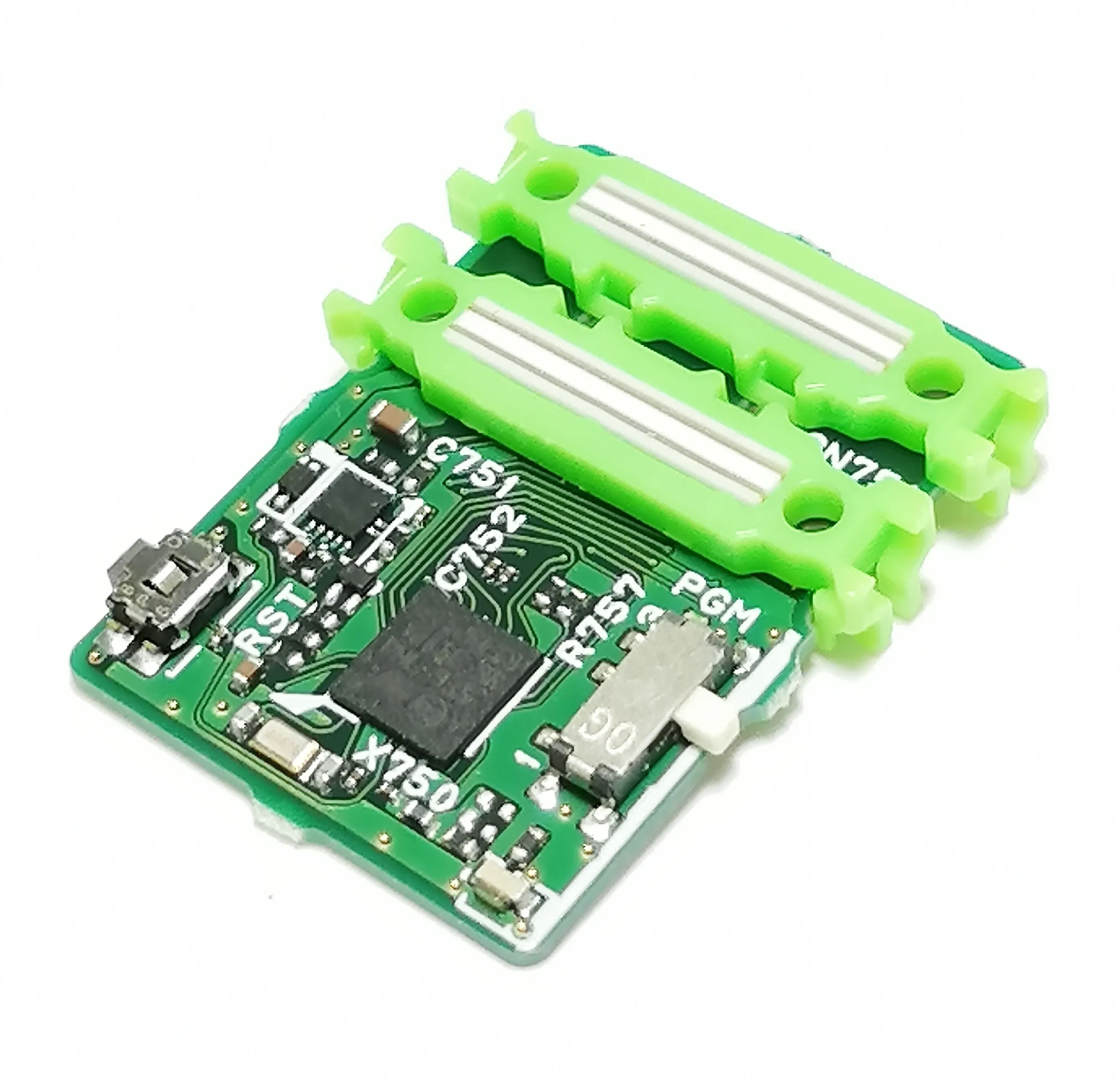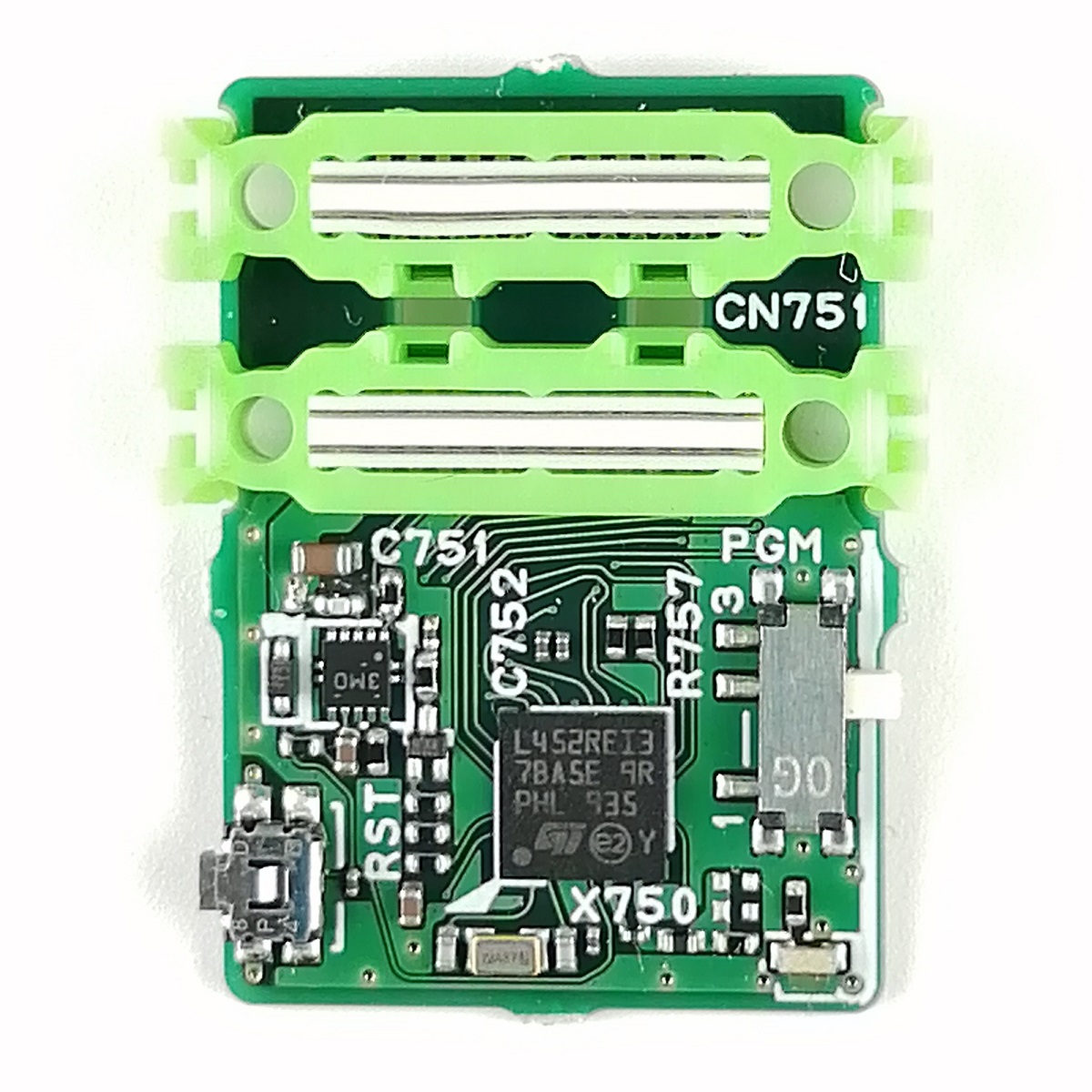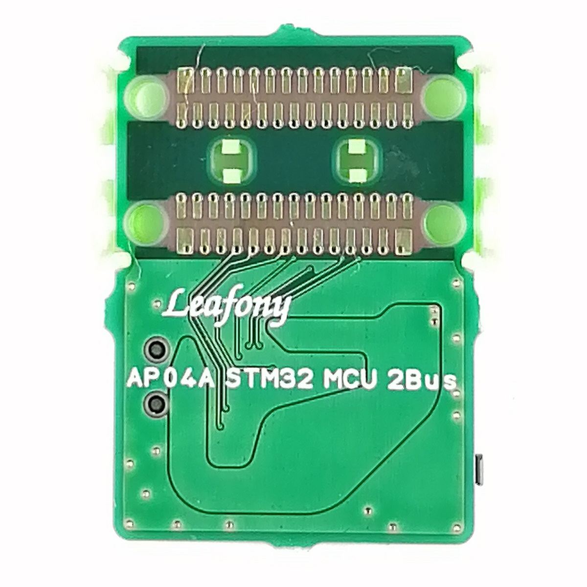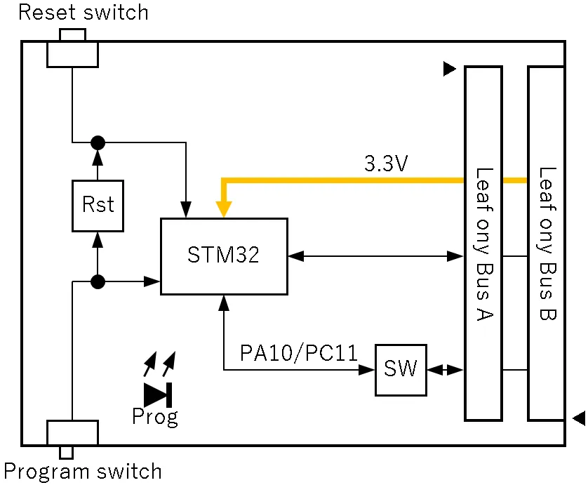 STMicroelectronics FPU付きARM Cortex-M4 32-bit RISC coreを搭載し、Leafony bus2個搭載した32bit MCUリーフである。USB接続する場合はUSBリーフを接続、SWDを使用する場合はShieldリーフを接続。