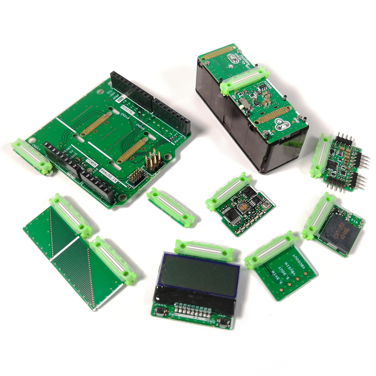 Basic KitやESP32 Wi-Fi Kitと組み合わせて使える、便利で使い勝手の良い色々なリーフが入っているキットで、より広範な応用を実現できます。Extension Kit には、マイコンリーフが含まれていませんので、ソフトウェアを動かすためにBasic Kitか、ESP32 Wi-Fi Kit が必要です。